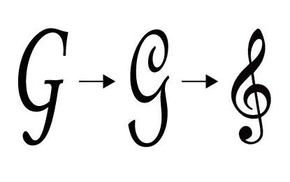ト音記号はおそらく筆記体のGの文字が変化したものと思われます。