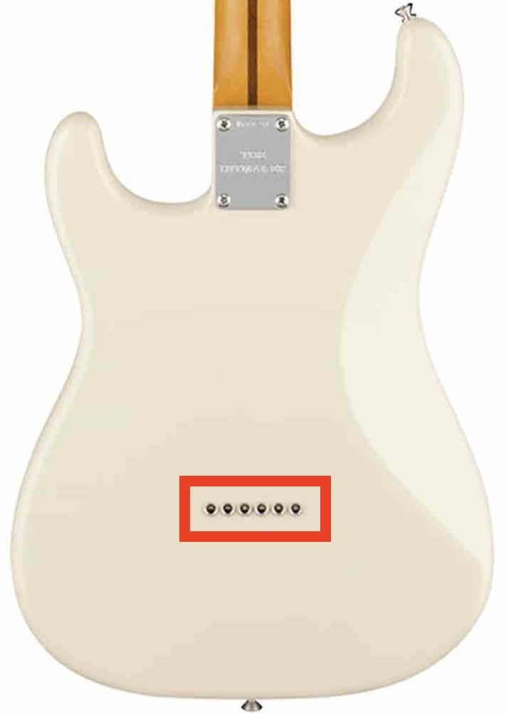 そんなシャーベルのネックが付いたストラトをジェイクはかなり改造していました。ピックアップは上からシングル・シングル・ハムバッカーでシングルコイルはディマジオのSDS-1を逆スラント(斜め)に取り付け、リアのピックアップはセイモア・ダンカンのアラン・ホールズワースモデルが取り付けられていました。
